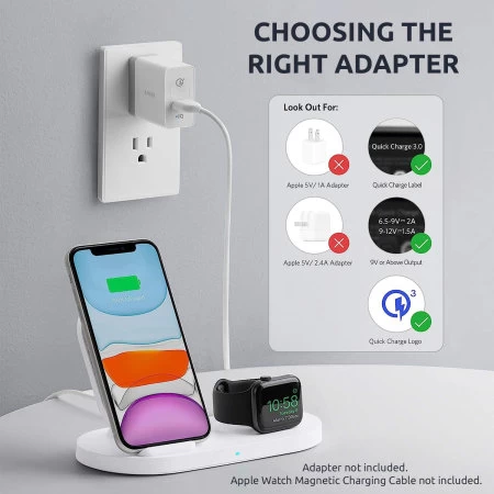 Please Note: An Apple Watch cable (1-metre cable only to be discreetly placed at the base of the Anker wireless charger) is required to charge your Apple Watch but is not included.