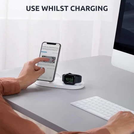 This Anker PowerWave Wireless Charger features a wireless charging stand to place your iPhone along with a holder to place your Apple Watch on whilst it charges. Save time and conveniently charge your iPhone and Apple Watch simultaneously.