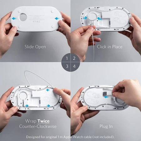 The Anker Powerwave Wireless Charger is easy setup and use, it also looks neat and tidy without an excess of wires showing. Simply slide open the base of the wireless charger, and click your Apple Watch 1 metre wireless charger cable (not included) into the slot. Then, wrap the Apple Watch charger cable counter-clockwise twice around the edges of the base of the wireless charger and plug it into the USB slot.