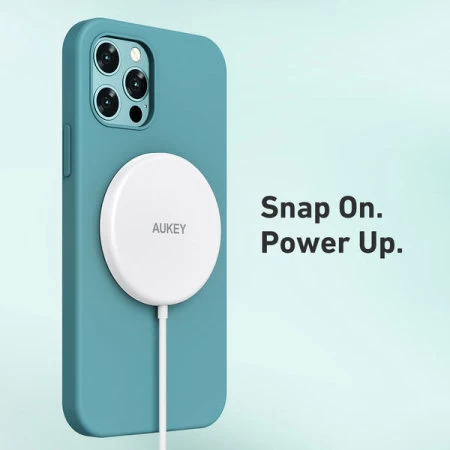 The Aukey Aircore magnetic wireless charger with the new MagSafe technology for the iPhone series delivers seamless alignment and fast wireless charging every time for the easiest way to charge yet. Just place your iPhone on this slim wireless charger for a secure connection and use your phone to game, scroll or call while it’s charging.