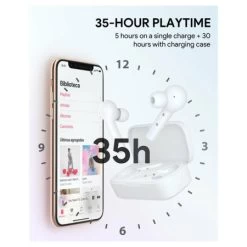 Enjoy up to 5 hours of high-quality sound output on a single charge. The included charging case provides you with an additional 6 chargers, allowing up to 35 hours of total playtime.