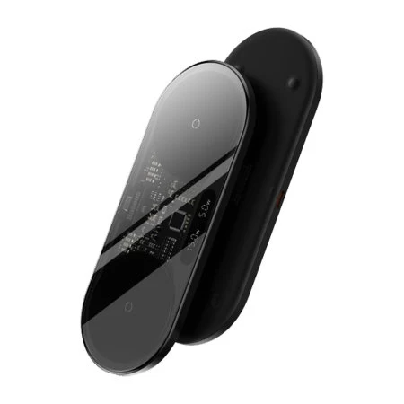 The transparent elements on the panel make the hardware equipment, such as the chip, safety circuit, and other components, visible. This Baseus Wireless Charging Pad has a minimalist design and a hidden type-C input that is compatible with the most modern devices on the market. It allows for stable and effective charging. In addition, this wireless charging pad has a wear-resistant foam cushion with anti-slip properties providing the phone with optimal stabilization while charging.
