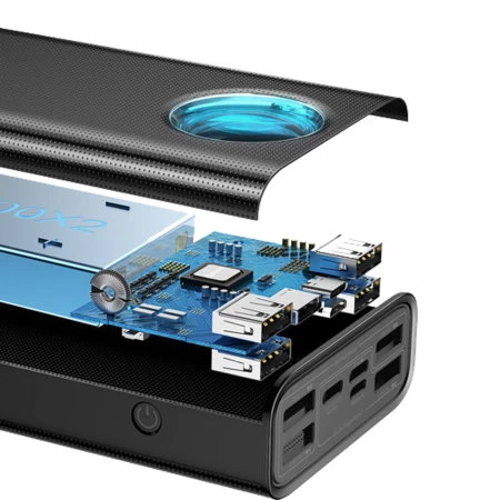 The Baseus power bank supports 2 fast-charging technologies (successively in the USB-C and USB ports marked with the number 4) allowing you to quickly restore the energy of your equipment. With 45W of power on USB-C and 18W on USB4 while charging, before you know it, your laptop and smartphone will be ready to go again.