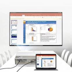 This Choetech 4K 60 HZ USB-C To HDMI Thunderbolt 3 Cable is perfect for transferring video and audio from a device with a USB Type C port to a TV, monitor or projector with an HDMI port. With it, you can display the contents of the computer, laptop or phone screen on a larger screen.