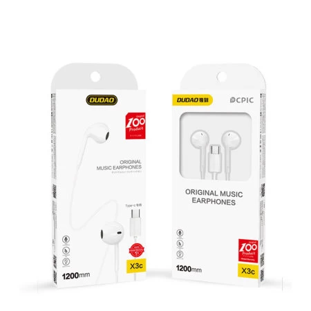 - 1 x Dudao White 1.2m In-ear USB-C Wired Headphones with Built-in Microphone