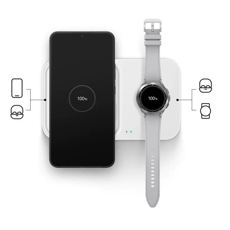 You don’t have to decide which of your devices should be prioritised when it comes to battery life. With the Duo Charger you can simultaneously power up your favourite pair of devices to enjoy together — whether that’s your phone and Galaxy Watch, or your Galaxy Watch and earbuds.