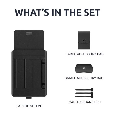 Be able to take all your must-haves with you on the go, whilst still looking great with this Olixar accessories pack! Featuring a high-quality, leather-style black laptop & tablet sleeve, 3 cord organisers to keep your desk mess-free, and two accessory bags (one small & one large) for your snacks, stylus, mouse, cables, and chargers; keep all you need in one, coordinated accessory pack with Olixar.