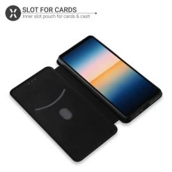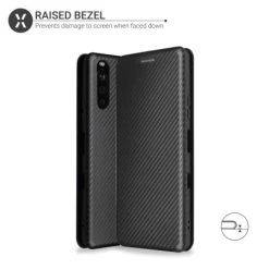 The Olixar Carbon Fibre Flip case features a carbon fibre effect design that compliments the beautiful design of your Sony Xperia 1 III. Whilst the original Sony Xperia 1 III construction makes the phone quite slippery and easy to drop, the Olixar Carbon Fibre Flip case offers a more secure grip, meaning you’re far less likely to drop your phone. This is a great first line of defence, often overlooked!