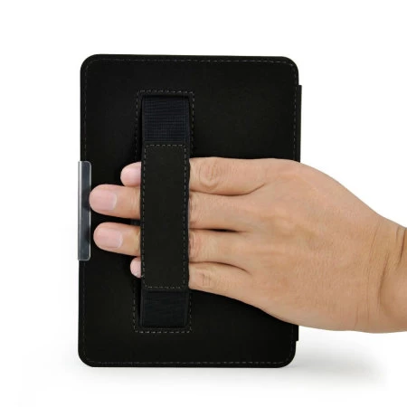The Folio Case features a handy strap on the inside cover. This strap lies flat when not required so adds no bulk and will not impede use. On the contrary, once you slip your hand through, you will have a secure grip on your Paperwhite with one hand, leaving your other free to manipulate the tablet, eat a sandwich, sip something cool and refreshing or whatever else you need or would like to do while reading and browsing. You’re also far less likely to drop your tablet.