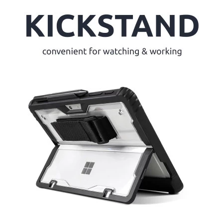 The Olixar Tough stand case has been specially designed for the Microsoft Surface Pro 8, so you are guaranteed the best possible fit. Underneath the sturdy tough casing is a strong and robust plastic frame, that will keep your handset safe and protected, guarding it from the rigours of general use. It also features thickening around each corner of the case and anti-fall protection, offering extra protection for your Microsoft Surface Pro 8 from life’s little accidents. Use your Microsoft Surface Pro 8 with out any worry with the Olixar tough stand case.Â