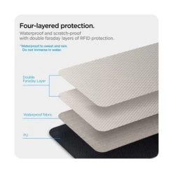 Enjoy multiple layers of protection with this Spigen Pouch. Featuring double-layered nanofibres which block the radio connection between your keys and your vehicle. In addition, the waterproof plastic outer shell protects your belongings from moisture and rain. The top layer is finished with an elegant PU eco-leather, which emphasises Spigen’s timeless design.